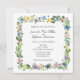A aquarela das flores silvestres e do quadro verde neste convite de casamento quadrado é colorida com rosa, azul, amarelo, roxo e verde.