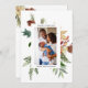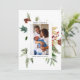 Enviar cartões de natal com esta placa lisa personalizada de natal fotográfico. Apresenta arranjos de aquarelas de ramos de pinheiros e flores. Personalize com sua foto e textos. Parte de uma coleção correspondente.