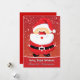 Cartão plano de Papai Noel bonito, com um Papai Noel adorável em fundo vermelho com flocos de neve. Um doce design com o pai de Natal perfeito para seus Cartões de natal.
