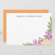 Colorida, vibrante e de verão, a nossa coleção de direitos tropicais é perfeita para casamentos de destino ou para assuntos de verão. Corresponder cartões de papelão é uma alternativo chic para dobrar cartas de agradecimento, ou uma bela escolha para artigos pessoais. A design apresenta flores estilizadas da dália em pêssego, framboesa e ameixa, cercadas por folhas verdes e peludas. Adicione seus nomes, monograma ou escolha de texto ao topo em caracteres modernos e simples de cinza carvânica. A placa se reverte para pêssego tropical sólido.