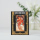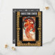 Cartão de Salvar a Data de Casamento com Verso Cinza. Frente Depõe a Dança de Alphonse Mucha. Verso Contém Dois Enfeites com os Detalhes Personalizados do Casamento Futuro.