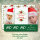 Este cartão de Natal duplo, com fotos planas, coloca suas fotos em cada extremidade, com uma bonito estrutura de poinsettia aquosa no centro. Seu texto personalizado está em vermelho no centro do quadro em um fundo branco. Mais texto personalizado está em branco em um fundo verde Feriado na parte inferior. A parte de trás do cartão tem um padrão bonito feito da mesma imagem floral de poinsettia.