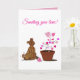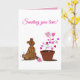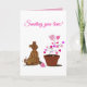 Envie um pouco de amor extra com este cartão de cumprimentos personalizável com a minha ilustração original de um adorável cachorro marrom olhando carinhosamente para uma planta em forma de coração que floresce. Combinado com a mensagem “Enviando Amor!”, este design captura calor, conforto e a beleza simples do afeto que cresce com o tempo.
