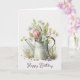 Design de aquarela de um buquê de flores em uma lata de água com borboleta para um aniversário. Todo texto é editável.