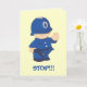 Um polícia bonito dos desenhos animados pronto para parar alguns tipos maus na imaginação da sua criança. Este cartão igualmente tem um selo de harmonização!