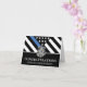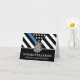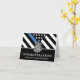 Este design apresenta uma bandeira da polícia com listras pretas e brancas, e uma fina faixa azul de linha também. Um excelente de dizer parabéns ao novo formando da academia de polícia. Personalize com o nome do polícia graduado em ouro. Celebre este marco em estilo!