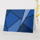 Inspirado pelo vidro colorido, este na moda geométrico contém polígonos em vários tons de azul esboçado em preto. Um triângulo azul claro desliza do canto superior direito com um conjunto de quadrangulares azuis progressivamente mais escuros e outras formas espiralando ao redor dele da luz para a escuridão. Duas formas azuis escuras movem o lado esquerdo do design original. Imagem criada digitalmente. Copyright © 2014 Claire E. Skinner. Todos os direitos reservados.