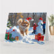 Cartão Pomerânia correndo em neve com chapéu de Natal