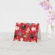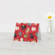Cães de Natal fofos em trajes festivos de feriado. Pomerânia com pelagens creme, preta, marrom-avermelhada, cinza e chocolate vestem chapéus de Papai Noel, chifres, suéteres em um fundo vermelho com enfeites espalhados.