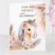 Cartão Pônea de cavalo com aniversário de flores de vasso
