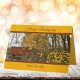 Esta linda Ação de Graças através da carta milhas inclui uma ponte coberta com água abaixo e belas árvores de queda na frente. As palavras na frente leram: "Feliz Dia de Graças através das milhas." Dentro é um belo sentimento por expressar desejos de Ação de Graças através das milhas. Copyright Kathy Henis