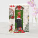 Poodle Dog Natal sentada fora de casa decorada com coroa de Natal, árvore de Natal é uma ideia perfeita de presente de Natal para amantes de cachorros.