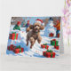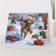 Um Poodle gracioso corre alegremente através da neve, vestindo um chapéu vermelho brilhante de Natal que destaca o espírito festivo da estação. Com a sua elegante postura e o seu encanto vivo, esta cena de inverno reflete lindamente a personalidade desta raça inteligente e amada, enquanto capta a magia dos feriados.