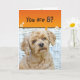 Um poodle castanho bonito com margaridas na cadeira de vime para o 8º aniversário, Texto pode ser alterado para qualquer aniversário de idade.
