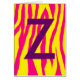 Cartão de saudação com monogramas de impressão zebra amarela e rosa.