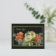 Gráficos de agradecimento Editáveis com letras elegantes de script e bonito arte floral de vintage de papoilas brancas e laranja vermelhas com flores azuis e um quadro de ouro em um fundo preto na frente. O reverso tem uma fileira de papoilas ao longo do fundo, sobre um fundo de cinza leve.