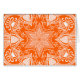 Esta mandala branca senta-se sobre um fundo laranja brilhante. A cor é brilhante e criativa. Parte da coleção Howlsplann Mandala. Este design pode não ser impressão tão brilhante quanto aparece on-line.