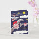 Este cartão de Natal incomum, mostra porcos voadores vestindo chapéus e barbas de Papai Noel, voando à noite. A mensagem diz "Que todos os seus desejos de Natal se realizem" Perfeito para preencher com presentes festivos e equipe com um cartão correspondente.