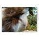 ©Angelandspot Um porco-guiné castanho e branco com cabelo comprido.