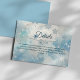 Compartilhe informações extras de casamento em estilo com este cartão de detalhes azul empoeirado. Projetado com flocos de neve moles e uma corda de prata romântica, é perfeito para fornecer aos convidados links RSVP, informações de recepção, acomodações ou direções. Coordena-se lindamente com a sua suíte de convites para as maravilhas do inverno.