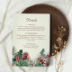 Estamos entusiasmados em introduzir a mais nova adição à nossa Coleção Verde de inverno - a elegante "Cartão Pormenores do Casamento Verde de inverno". Este cartão foi meticulosamente projetado para complementar o encantador Convite para Casamento Verde de inverno, acrescentando um toque de sofisticação à sua papelaria de casamento. Seus convidados ficarão encantados ao receber este cartão requintado, que fornece detalhes essenciais para seu dia especial. A frente mostra uma disposição graciosa de ramos de pínus, pinecones, bagas ocas e folhas verdes, encapsulando a beleza dos elementos naturais do inverno. Personalize o Cartão dos Detalhes do Casamento Verde de inverno para se alinhar perfeitamente com o tema e preferências do seu casamento, fazer que seja um bem-estar apreciado para os seus convidados. Preencha o conjunto de papelaria do casamento no inverno com este cartão delicioso e crie uma apresentação coesa e encantadora para os seus convidados. Peça seus Cartões Detalhes do Casamento Verde de inverno agora e assegure-se de que todos os aspectos do seu casamento sejam infundidos com a magia da beleza do inverno.