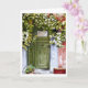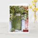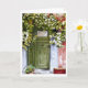 Uma porta verde velha e intacta quase escondida atrás da videira colorida que cresce ao lado da casa. O curvado vermelho na parede adiciona um bom contraste ao verde da vinha. Reprodução de uma pintura de aquarela original.