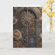 Faltando seu cartão para um amigo ou membro da família. Porta de Steampunk com engrenagens metálicas e flores, bela arte ai.