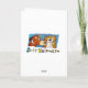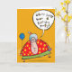 Porta-voz da Mulher Velha com chapéu de aniversário e balão perguntando "O que é melhor que uma festa? Este cartão."