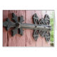 A porta de madeira de envelhecimento da igreja com ferro ornamentado articula-se.