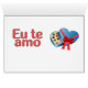 "Eu te amo" - "Eu te amo" em português. Dê este belo cartão ao Dia de os namorados ou sempre que quiser expressar seu amor. Corações pequenos estão em um cenário concreto no sol da manhã, lançando sombras longas.