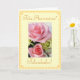 Cartão para postal um aniversariante, beje do fundo de COM foto de rosas em. Imagem dos rosas em um fundo do beije, para a senhora do aniversário. A fotografia por Maria Santos, Lusinhas faz Sul.