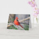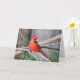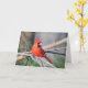 Um cardeal-do-norte vermelho brilhante se destaca em cartão de saudação alegre. Ideal para todo tipo de ocasiões.