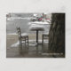 Café - mesa e cadeira cobertas com neve.