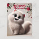 Espalhe a alegria de férias com este maravilhoso cartão postal de "Natal Feliz"! Esta design apresenta um gato branco e fofo com olhos brilhantes e curiosos, aninhados numa cena confortável e festiva com flocos de neve suavemente caindo por aí. O gato veste um chapéu vermelho bonito de Papai Noel, acrescentando um toque de charme de Natal. As palavras "Meowy Christmas" são escritas de forma lúcida, com uma letra quente e alegre, capturando o espírito da época. Perfeito para amantes de gatos e qualquer um que queira enviar um cartões de natal confortável e inspirado no felino para amigos e familiares!