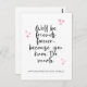 Celebre a sua melhor festa do Dia de Galentine com um cartão que captura perfeitamente a essência do seu laço inviolável (e ligeiramente incriminador)! Este "Seremos Amigos para Sempre... Porque você sabe demais" é a melhor maneira de compartilhar uma risada enquanto mostra seu apreço pelo seu parceiro no crime. Características: (1) design lúdico e espirituoso com desenhos elegantes e sotaques cardíacos. (2) Fundo branco com detalhes cor-de-rosa suave para um aspecto chic e moderno. (3) Texto personalizável do rodapé para adicionar sua própria mensagem ou assinatura sincera. (4) Cartolina de alta qualidade com opções para acabamentos fosfatos ou brilhantes. (5)Perfeito para o Dia de Galentine, os aniversários ou qualquer ocasião para celebrar a amizade.