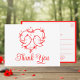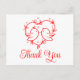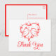 Este cartão postal encantador de papagaios é uma maneira deliciosa de expressar sua gratidão. A delicada ilustração de coração vermelho, juntamente com a paleta de cores simples em vermelho e branco, cria uma aparência suave e romântica que é perfeita para casamentos ao ar livre no verão ou celebrações de jardim na primavera. Ideal para amantes da natureza, este design combina elementos boho com adorável arte de pássaros. É uma maneira encantadora de enviar seus agradecimentos com um toque de amor extra. Este cartão também pode ser personalizado para vários eventos.
