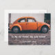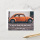 Mande amor para aquele velho amigo, aquele amigo dourado. Cartão poste personalizável. Fotografia com um carro clássico de besouro laranja
