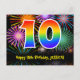 Cartão Postal 10º Aniversário – Padrão Divertido de Fogos de Art