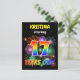 A frente desta design postal de convite de aniversário divertida e vibrante apresenta um nome editável, um emocionante padrão inspirado em fogos de artifício celebratórios, e a mensagem "17 ANOS DE IDADE!" tendo um espectro colorido do arco-íris inspirou um padrão de gradação. O verso apresenta uma mensagem editável que pode descrever quando e onde a parte está sendo mantida, além de outras informações relevantes. Cartões-postais como este podem ser enviados a potenciais participantes de uma festa que está sendo realizada para celebrar o aniversário de alguém que está fazendo 17 anos de idade. [~Z0000452]