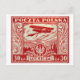 1925 red 30gr Polska Airmail Stamp. O primeiro design de carimbo de correio aéreo do Polônia que representa um avião Schneider sobre a cidade de Varsóvia, Polônia