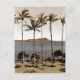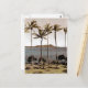 Foto colorida à mão de 1940, que mostra a famosa Cabeça de Diamante do Havaí através de um pomar de palmeiras. Em casas de fundo, é visto um hotel, alguns navios de navegação e armadilhas de ruptura de ondas.