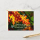 Cartão postal de citação inspirador retrata belas folhas de outono amarelas, laranjas e vermelhas. Apresenta o versículo bíblico 1 Coríntios 15:57, "Graças a Deus! Ele nos dá a VITÓRIA por meio de nosso Senhor Jesus Cristo."