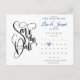 Este bonito aniversário de casamento da safira salva o cartão de data apresenta um coração de amor bonito e calendário destacando sua data especial. O reverso apresenta corações confetti. Projetado por Thisnotme©