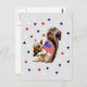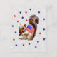 Esquilo patriótico marrom bonito. Tem sua bandeira, é cercado por estrelas vermelhas, brancas e azuis e está toda pronto para ir os loucos que comemoram o Dia da Independência.