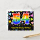 A frente deste design de cartão postal colorido, amoroso e divertido, com tema de aniversário, apresenta um grande número "54" com um padrão inspirado no gradiente do espectro arco-íris, juntamente com a mensagem "Feliz 54.º Aniversário", e um nome de destinatário personalizável. A frente apresenta ainda um fundo colorido e vibrante com um padrão cardíaco amoroso. A parte de trás apresenta uma mensagem de saudação de aniversário editável, ou talvez pudesse ser apagada e deixada em vazio se uma mensagem for escrita manualmente. Um postal de aniversário personalizado como este pode ser uma maneira divertida de reconhecer o cinquenta e quarto aniversário de alguém. Cartões postais como este também podem ser usados para convidar convidados para uma festa de aniversário ou comemoração sendo mantidos para alguém que está fazendo 54 anos de idade. [~Z0000448]