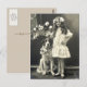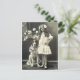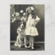 Reprodução do cartão postal vintage com uma criança adorável e o seu cão