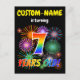 A frente deste design postal animado e divertido convite de aniversário apresenta um nome personalizado, um emocionante padrão inspirado em fogos de artifício celebratórios, e a mensagem "7 ANOS DE IDADE!" tendo um espectro colorido do arco-íris inspirou um padrão de gradação. O verso apresenta uma mensagem personalizada que pode descrever quando e onde o partido está sendo mantido, além de outras informações relevantes. Cartões-postais como este podem ser enviados a potenciais participantes de uma festa de aniversário em comemoração do sétimo aniversário de alguém. [~Z0000452]