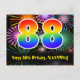 Cartão Postal 88º Aniversário – Padrão Divertido de Fogos de Art
