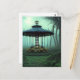 Cartaz de arte de fantasia estranho criado com o software de renderização AI apresenta uma cena distópica de um carrossel estilo vitoriano abandonado em meio a um misterioso parque supercrescido.