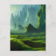 Linda paisagem de fantasia de luxuosa e vale verde em meio a montanhas colunares espetaculares. Cartaz de arte fantasia criado usando software gerador de IA.